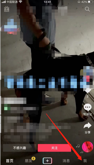 1. 首先打开抖音app,进入到主界面后,点击下方的我。